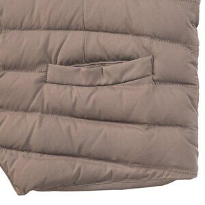 This puffer-style waistcoat from Brunello Cucinelli's 2015 Autumn and Winter collection is crafted in a taupe opaque nylon, and is quilted with insulation throughout. It features a sleeveless design, a notched lapel collar, front button closures, front welt pockets, back buttoned waist straps, and is lined in a navy nylon.