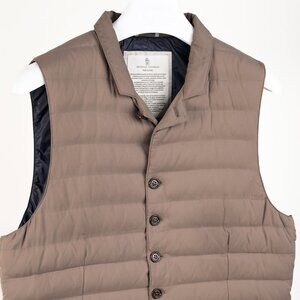 Brunello Cucinelli AW/15 Taupe Opaque-Nylon Notched-Lapel Down Waistcoat