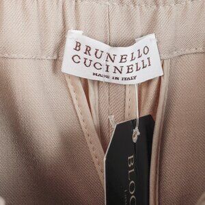 Expertly crafted by Brunello Cucinelli, these wool pants feature a pleated waist in a khaki beige color. With their elastic waistband, they offer both comfort and luxury in one versatile piece. The perfect addition to any wardrobe for effortless style and sophistication.