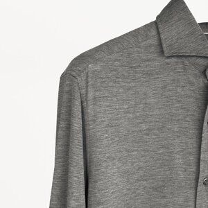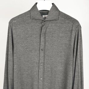 Brunello Cucinelli Dark Grey Silk & Cotton Jersey Button-Up Basic Fit Shirt