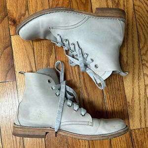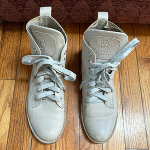 Brunello Cucinelli Grey Leather 7 hole Combat Boots, size 38.5