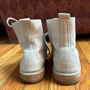 Shoes are in good condition. Some scuffs on front of boot, pictured. Interior lining is coming unglued slightly, doesn’t affect ability to wear and you can’t see it when the shoe is on but it is there, pictured.
