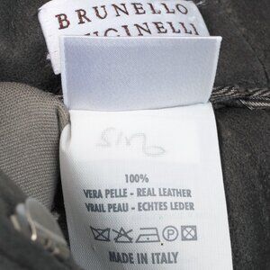 Brunello Cucinelli Grey Leather Panelled Skinny Pants