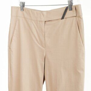 Elevate your wardrobe with the exquisite Brunello Cucinelli Monili Bead Embellished Khaki Pants. Adorned with delicate monili bead embellishments at the waist, these pants add a touch of luxury to any outfit. Crafted with premium quality khaki fabric, they effortlessly combine comfort and style. Experience effortless elegance with these sophisticated pants.