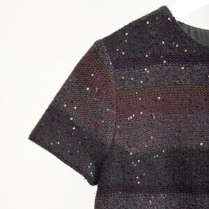 Brunello Cucinelli Purple Striped Sequined Short-Sleeve Sweater