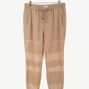 These joggers from Brunello Cucinelli's 2015 Spring and Summer collection are crafted in a taupe cotton, and are elevated with tonal sheer stripes on the legs. They feature an elasticized drawstring waistband, front welt pockets, tapered legs, elasticized cuffs, and are lined in a tonal silk-blend crepe.