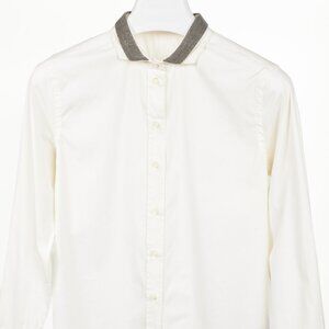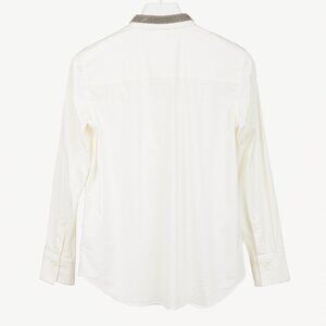Brunello Cucinelli SS/17 Off-White Cotton Poplin Monili-Collar Shirt