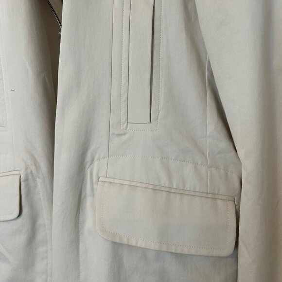 Elegant tan jacket by Brunello Cucinelli. Classic design with button closure. Perfect for versatile styling.