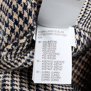 These cigarette trousers from Brunello Cucinelli are crafted in a sand Beige linen suiting with a Black and blue Prince of Wales check throughout, and feature a high-waisted silhouette characterized by a masculine back slit, a front double hook and zip fly closure, belt loops, front slanted pockets, back welt pockets, and cropped cuffed hems.