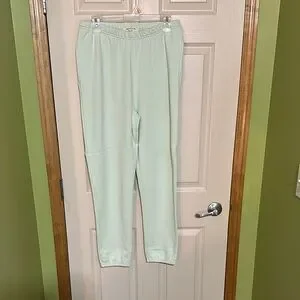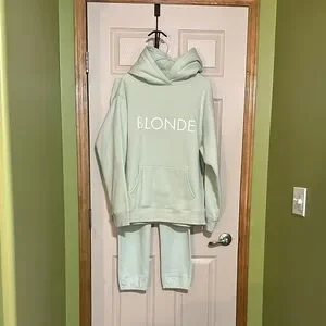 BNWOT… BTL sweat suit amazing mint green color. The color of the 2 has a slight difference because 2 different materials. However if you wear together you can’t tell!! I would like to sell as a suit however I could split if you really want just the one. There are 2 ever so small marks but could come out in wash I never wore or washed. I think it was just from shipping etc. Top ptp 24 length 27 pants waist (not stretched) 16 inseam 29