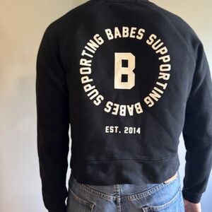 This Brunette The Label 'Babes Supporting Babes' crewneck sweater is cropped and oversized. Size M/L. Will fit a variety of sizes depending on desired style.