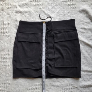 Black Faux Suede Mini Skirt, this skirt is insanely soft, feels like butter on your fingers! Fully lined front lace up, with deep front pockets, and completed with a zipper in the back.
