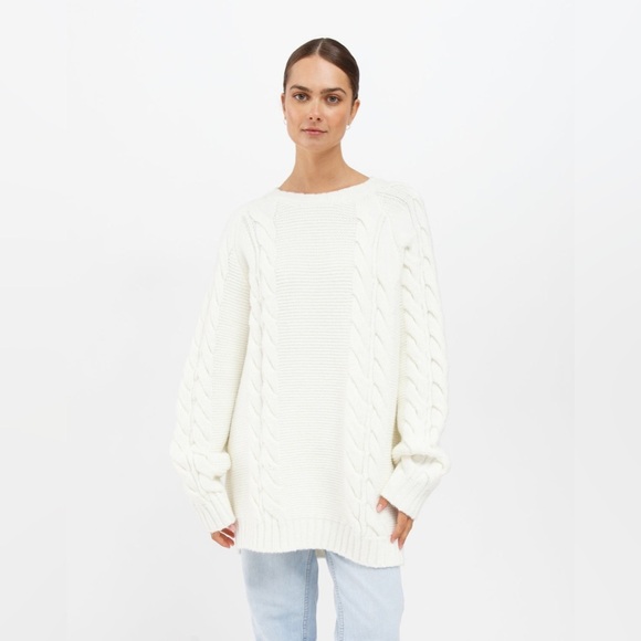 Brunette the Label Adele Cable Knit Sweater in Cream/ Whit - Size L/XL