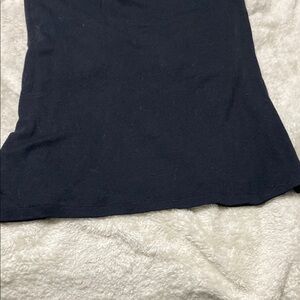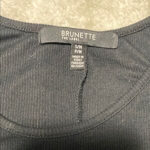 Sleek and versatile black dress by Brunette. Perfect for layering or wearing alone. Some wear showing on strap.