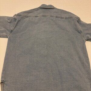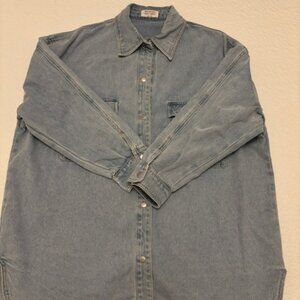Beautiful oversized denim jacket in Light Blue colour. Excellent condition. Oversized fit allows for a warm layer underneath - perfect for chilly fall days! Last image (from company website) reflects true colour.