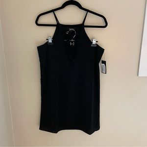 Brunette the Label The Helena Dress, Black, NWT, Tie Front Detailing, Lined, Spaghetti Strap. Fits up to a med,
