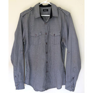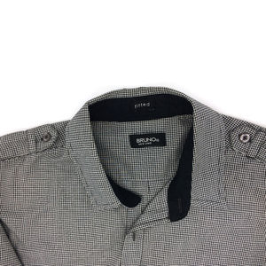 Bruno Black White Check Button Down Fitted Shirt M