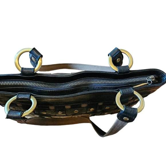 Bruno Leather Canvas Boho Vintage Style Retro Shoulder Bag Black.