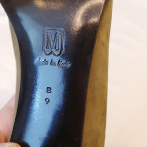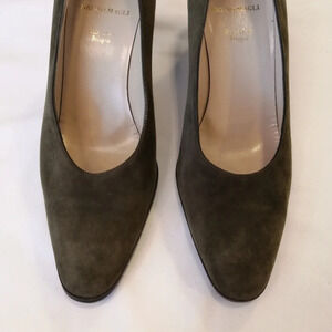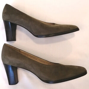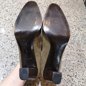 Bruno Magli Suede Italian Vero Cuoio Olive Green Wooden Block Heel Pumps Size 9