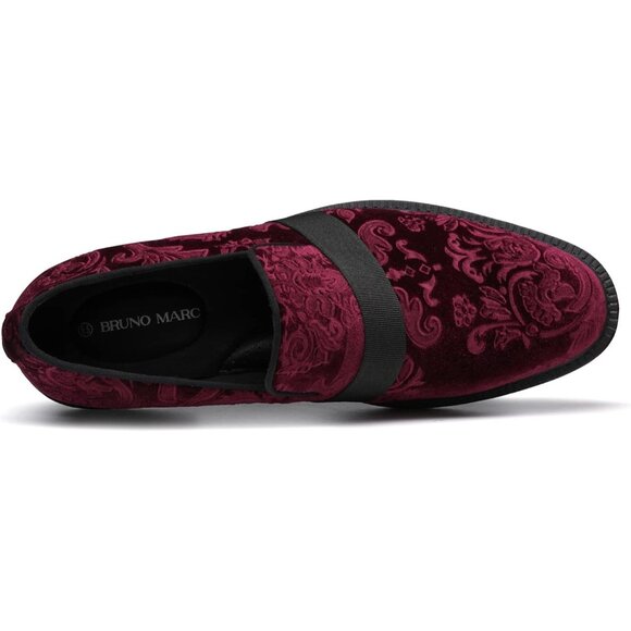 Bruno Marc Men's Red Tuxedo Shoe Slip on Classic Patent Velvet Leather Loafers