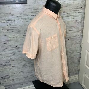 In excellent condition. Minimalist Costal vibes Light salmon color. Linen and cotton blend button up casual shirt. Lightweight breathable material. 2 chest pocket with buttons. Roll short sleeves. Please see pictures