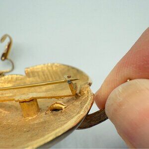 Bonus leaf pin in the same brushed gold and shiny gold detailing finish. Pin works well but I don't like the backing (see photo) so the price only reflects the earrings.