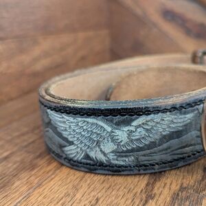 Brushy Creek Embossed Distressed Gray Leather Eagle Belt Sz 32