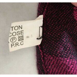 Design : dual color scarf , dark pink on one side , burgundy on the other , city marks , Brussels print all over the scarf , tassels. Soft on touch .