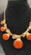 Brutalist Brushed Gold and Marbled Orange Jewelry Set of Earrings and Necklace