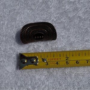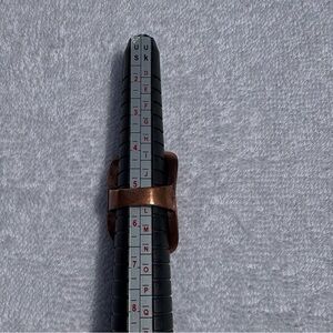 Eye-catching brutalist copper ring featuring a textured concentric design and a wide, bold face. Its warm patina and unique handcrafted look give it a distinct retro feel, perfect for vintage lovers and bold fashionistas. The ring has a wide band for comfort and durability.