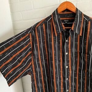 Bruttini Men’s Button down shirt Black/Cinnamon brown/White Stripes M
