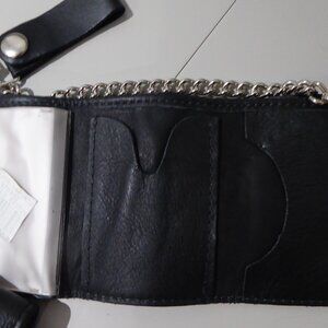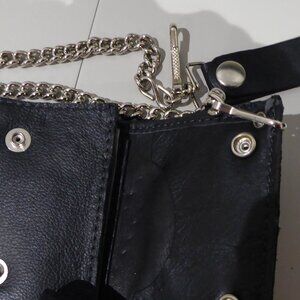 Tri-fold Leather Steel Chain Wallet, Snap closure
