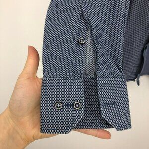 Bruun & Stengade Geometric Print Blue Button Down Dress Shirt