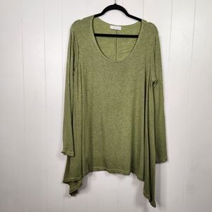 Bryn Walker Green Asymmetrical Charles Tunic Long Sleeve Top Lagenlook Stretch