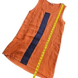 Bryn Walker Womens 100% Linen Colour Block Round Neck Long Tunic Tank, Size XS
