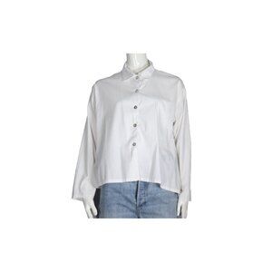 Bryn Walker Women's Small White Blouse Button-Up Cotton Hi-Low Long Sleeve Shirt
