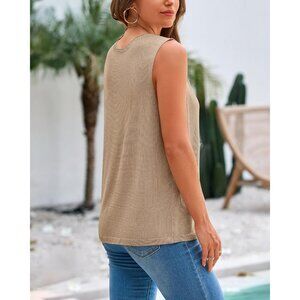 Btfbm Women Khaki Sleeveless Crew Neck Ribbed Knit Lightweight Pullover Sweater