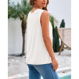 Btfbm Women White Sleeveless Crew Neck Ribbed Knit Lightweight Pullover Sweaters