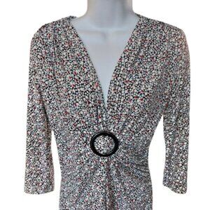 - V-Neck - 3/4 sleeves - hoop on the front - bubbles are blue, black, blue and red over a white background - in very good condition
