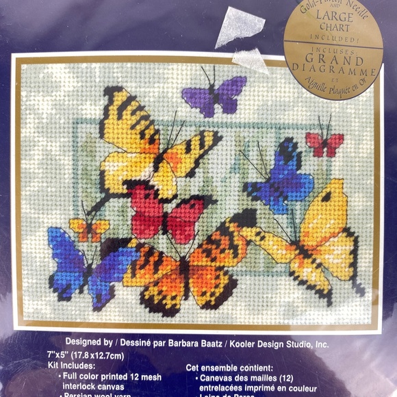 Bucilla Needlepoint Kit. Kit # 4764 - 1998. Butterfly Surprise. 7 x 5 inch completed. Very colourful.