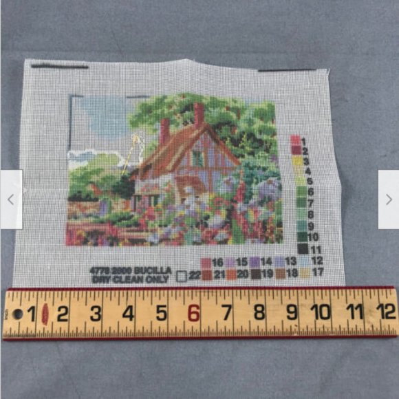 Needlepoint kit from 2000 "April Cottage" Bucilla kit #4778.