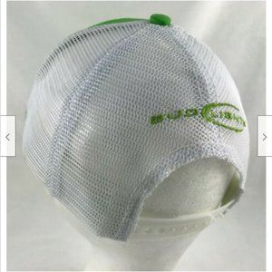 Pre-owned Bud Light Lime adjustable snapback cap. Distressed fabric design on brim. Light wear; minor marks to fabric.