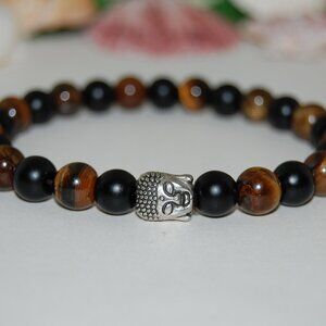 Buddha Bracelet,Tiger Eye Bracelet,Onyx and Tiger Beads,8mm