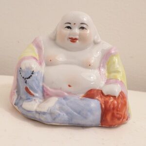 Vintage Laughing Buddha Statue, Porcelain Happy Buddha, Sculpture, Famillie Rose, Porcelain Figurine, Antique, Hand Made, Hand Painted