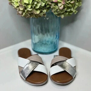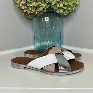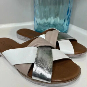 New. Bueno European handmade leather sandal Style Yippie. Leather upper, Leather lining, Leather insole. Color: light grey combo (silver, mauve, white, grey, tan).