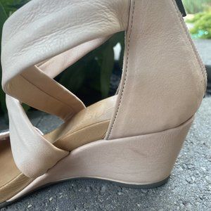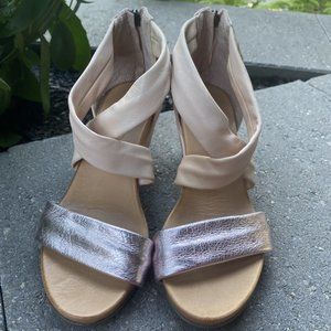 Wedges you will be wearing on repeat this season! IONA Metallic features a criss-cross strap detail with a metallic accent. The leather is so buttery soft. These are like new. The soft pink almost nude leather has some variations in the color which you can see in the pictures . Please see pictures for quality and color variations.