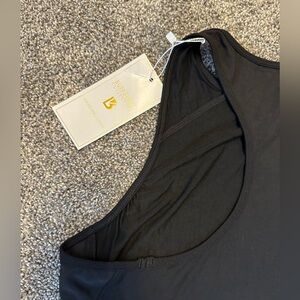 Sleek black tank top. Perfect for workouts or casual wear. Soft and comfortable fabric.