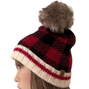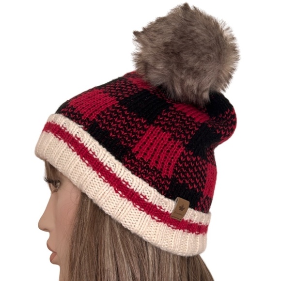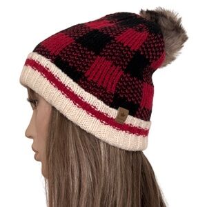 𧦠Classic UNISEX wool blend buffalo plaid toque with pom pom