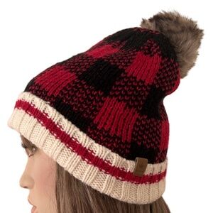 Buffa Plaid Toque Hat Cap w/ Pom Pom Heritage Work Boot Sock Ribbed Trim UNISEX