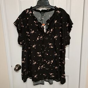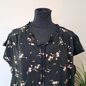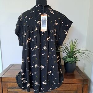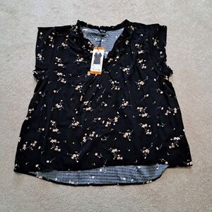 Buffalo David Bitton Floral Blouse Lightweight Flowy Top XXL Black Pink